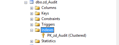 From the object explorer in SQL Server Management Studio locate and expand the zd_audit table.