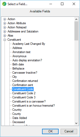 However, it is possible to select on the main constituent node, "constituent code" which is the primary constituent code.