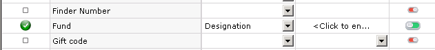 Field Settings work with specific rows within a mapping. For example, you can see the green radio button at the end of the row for Fund indicating that Field Settings have been selected for that particular field.