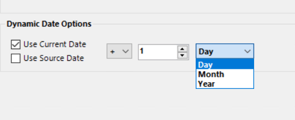 You can also work with Dynamic Date options (selecting either the Current date or the Source Date).
