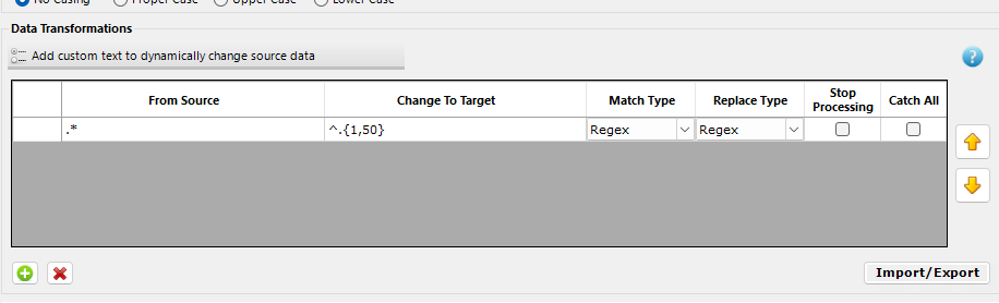 In the example below, we used a Regular Expression in the From Source column to select all field entries. In the second, we have opted to truncate that field to 50 characters.