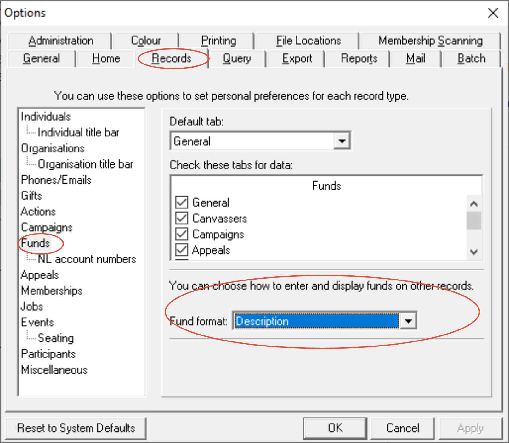 Head to Customise Home Page>Records>Funds and the seek to change the Fund Format