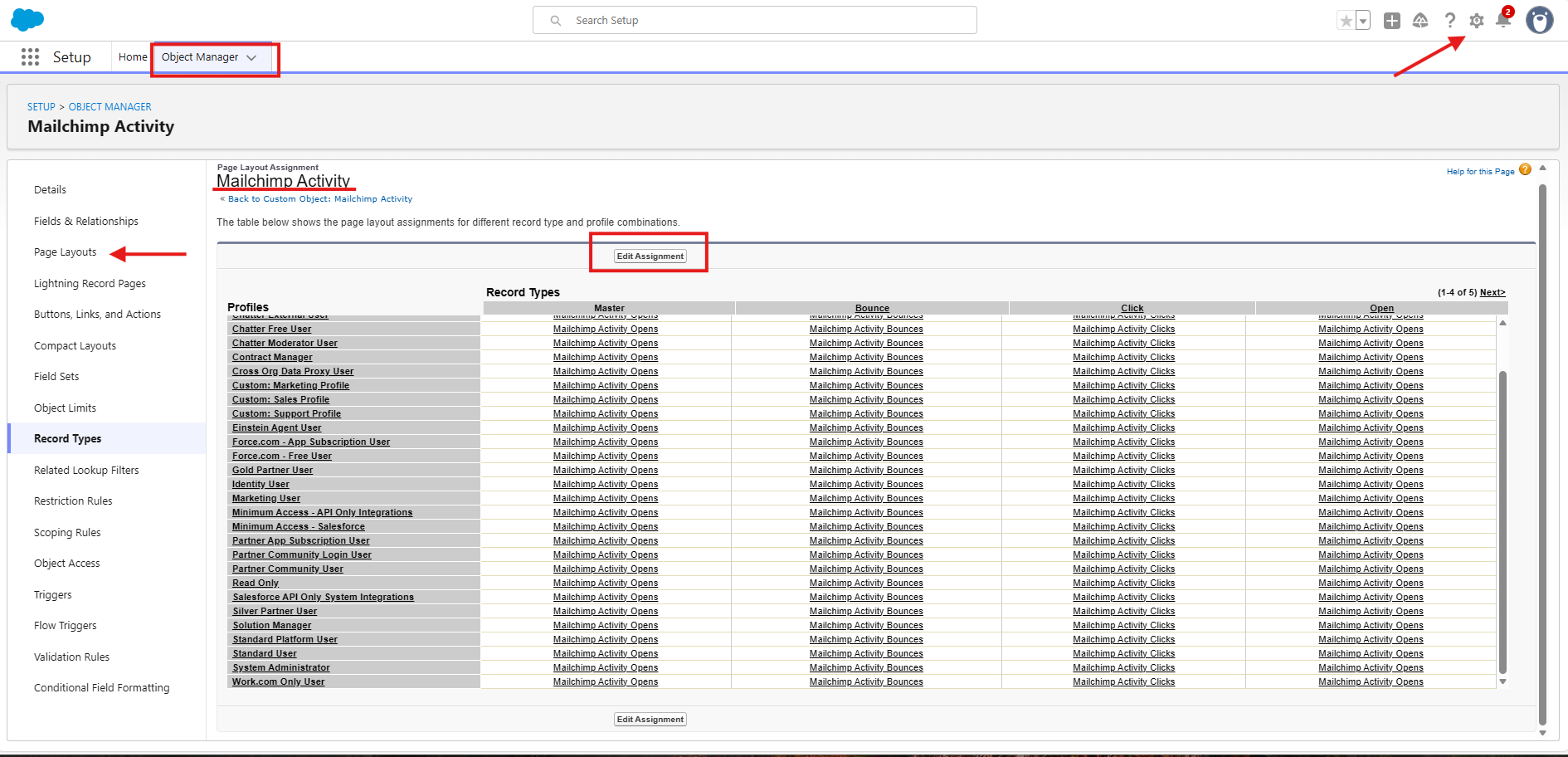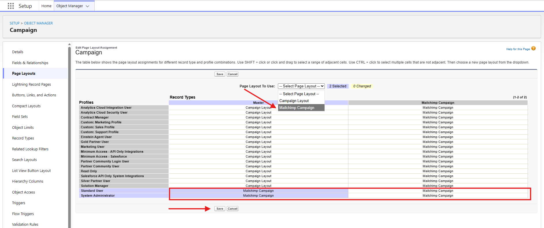 Assigning the custom layout for Campaign, Campaign Member and Mailchimp Activities to EACH profile