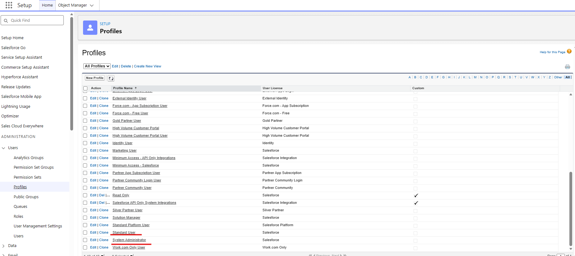 Select the profile to assign the permissions to (DO NOT Select 'edit', select the profile)